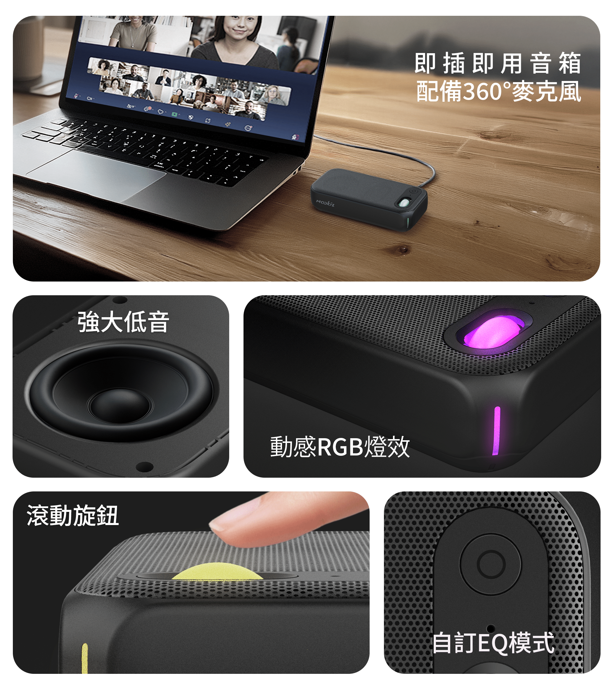以深沉低音帶來沉浸式音效,這款 USB-C 喇叭同時能滿足娛樂與工作所需。內建具回音抑制的全向麥克風,無論你在聽音樂、看電影,或使用 AI 語音輸入時,都能保持清晰聲音。